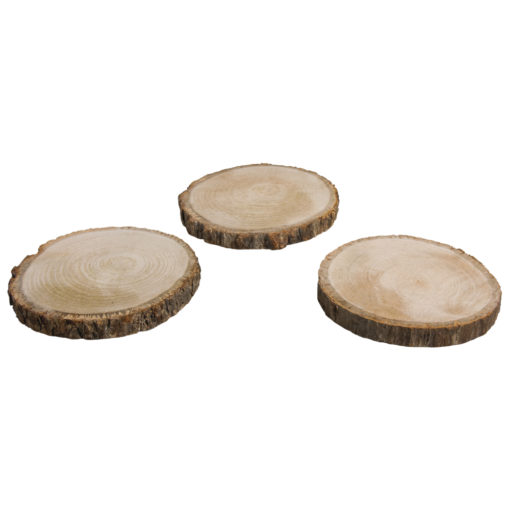 Die runden Naturholzscheiben mit dekorativer Rindenumrandung können mit nahezu jedem Material harmonisch und stilvoll kombiniert werden.